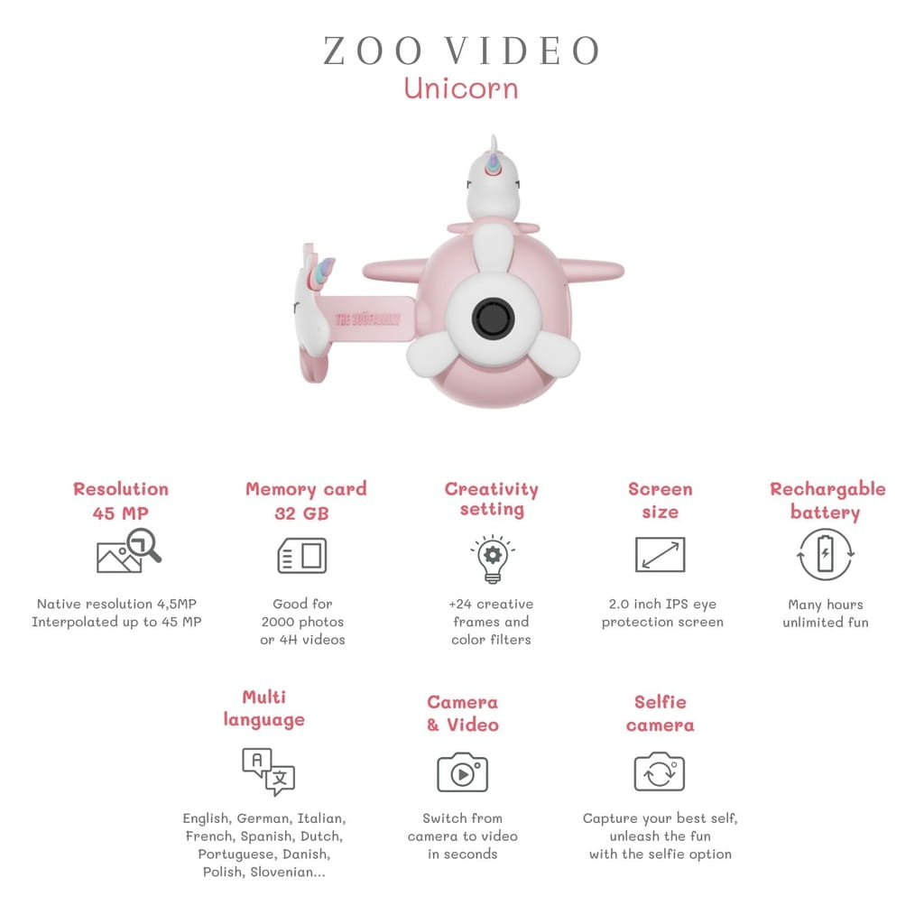 Zoo Video Unicorn The ZooFamily to idealny aparat i kamera dla dzieci, które chcą rozpocząć swoją przygodę z filmowaniem i fotografią. Pozwól dziecku tworzyć własne historie, uczyć się poprzez zabawę i rozwijać pasję do obrazu i dźwięku – z The ZooFamily każda chwila staje się wyjątkowa!