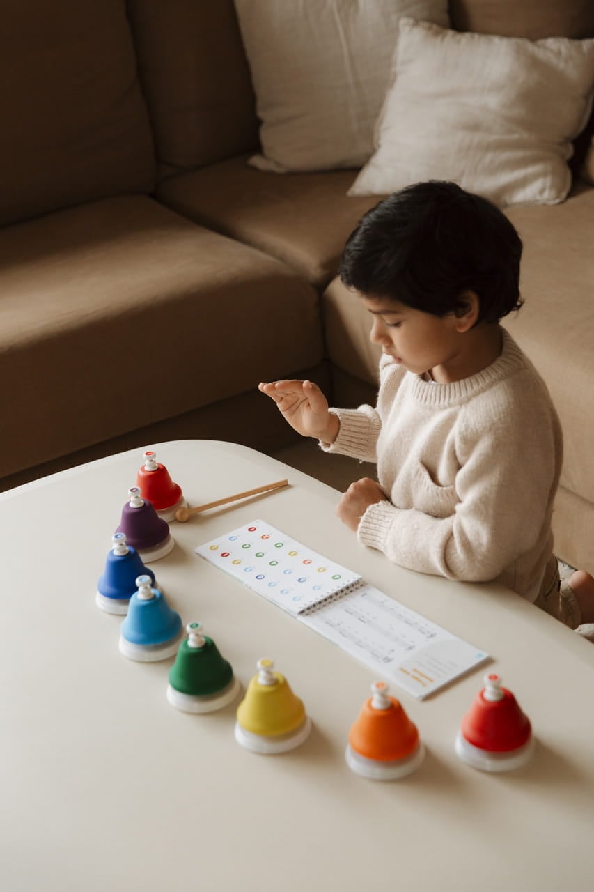 Dzwonki DingdangBu to kolorowy instrument muzyczny dla dzieci! Zestaw umożliwia dzieciom natychmiastowe rozpoczęcie zabawy muzyką i naukę prostych piosenek krok po kroku. Wystarczy jedno naciśnięcie, aby każdy dzwonek zagrał idealnie dostrojoną nutę diatoniczną! Za pomocą zaledwie kilku dzwonków dzieci mogą stworzyć własną mini orkiestrę i tworzyć prawdziwe melodie od samego początku – bez konieczności stosowania techniki. To przyjemny i intuicyjny początek świata muzyki.