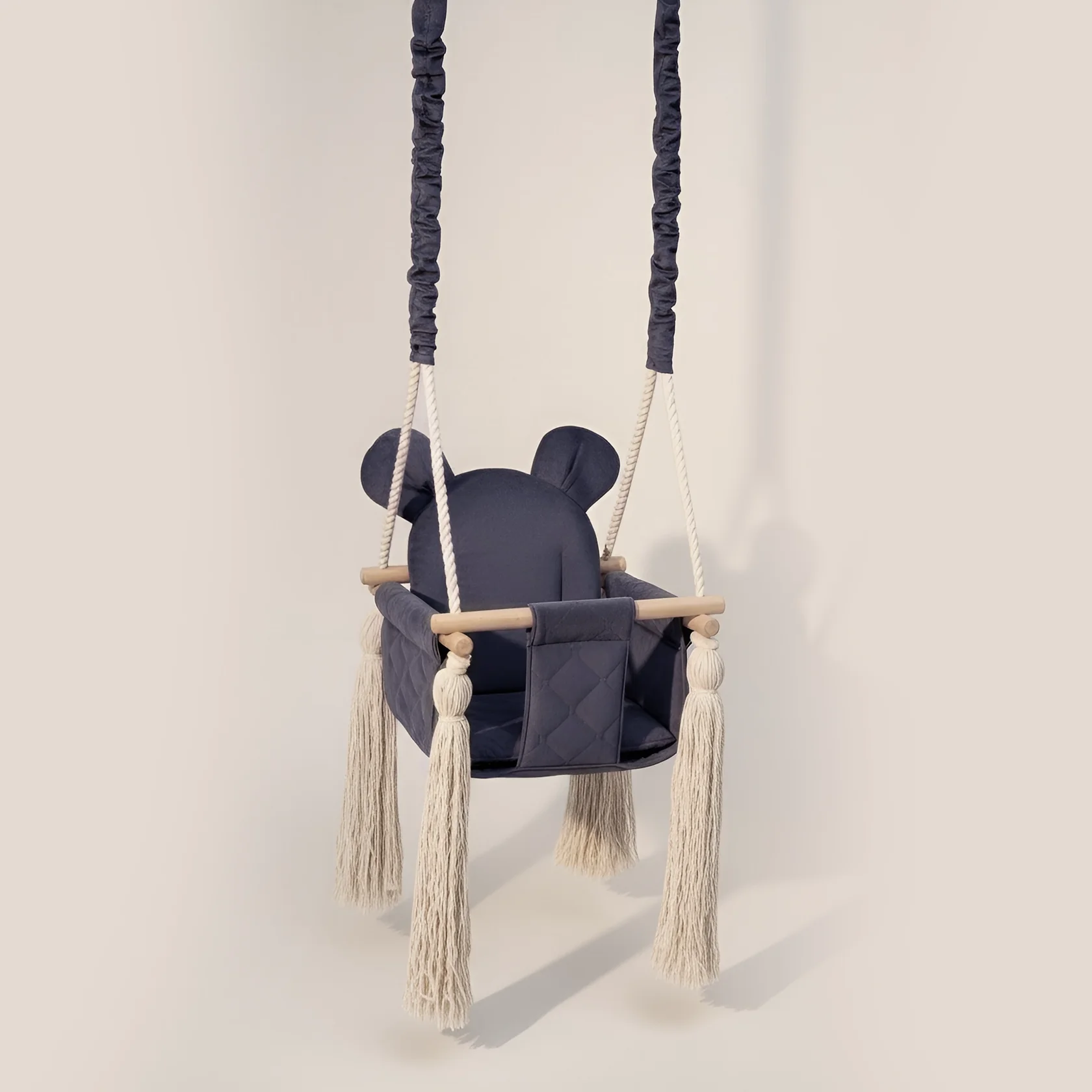 Huśtawka drewniana BabySteps VelvetSwing Nightshadow Blue dla dzieci z ozdobnymi chwostami