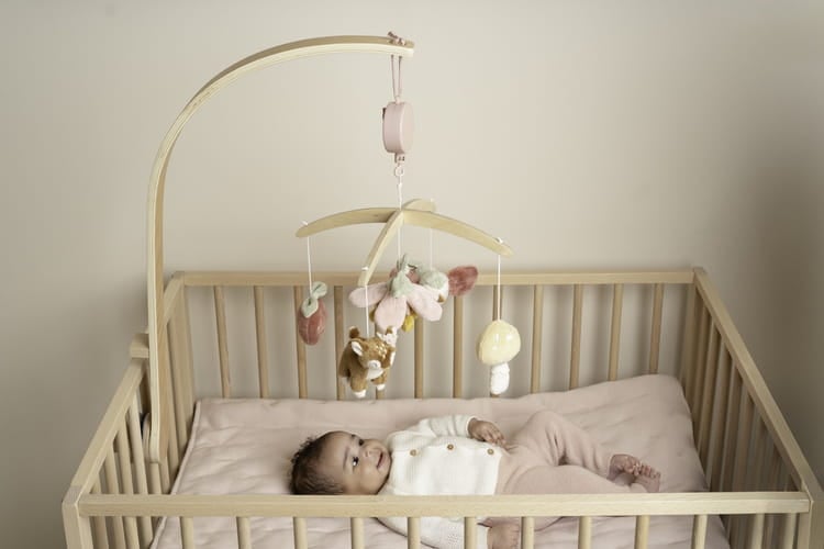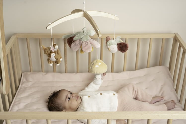 Karuzelę drewnianą Fairy Garden FSC Little Dutch można łatwo zamontować do dziecięcego łóżeczka.