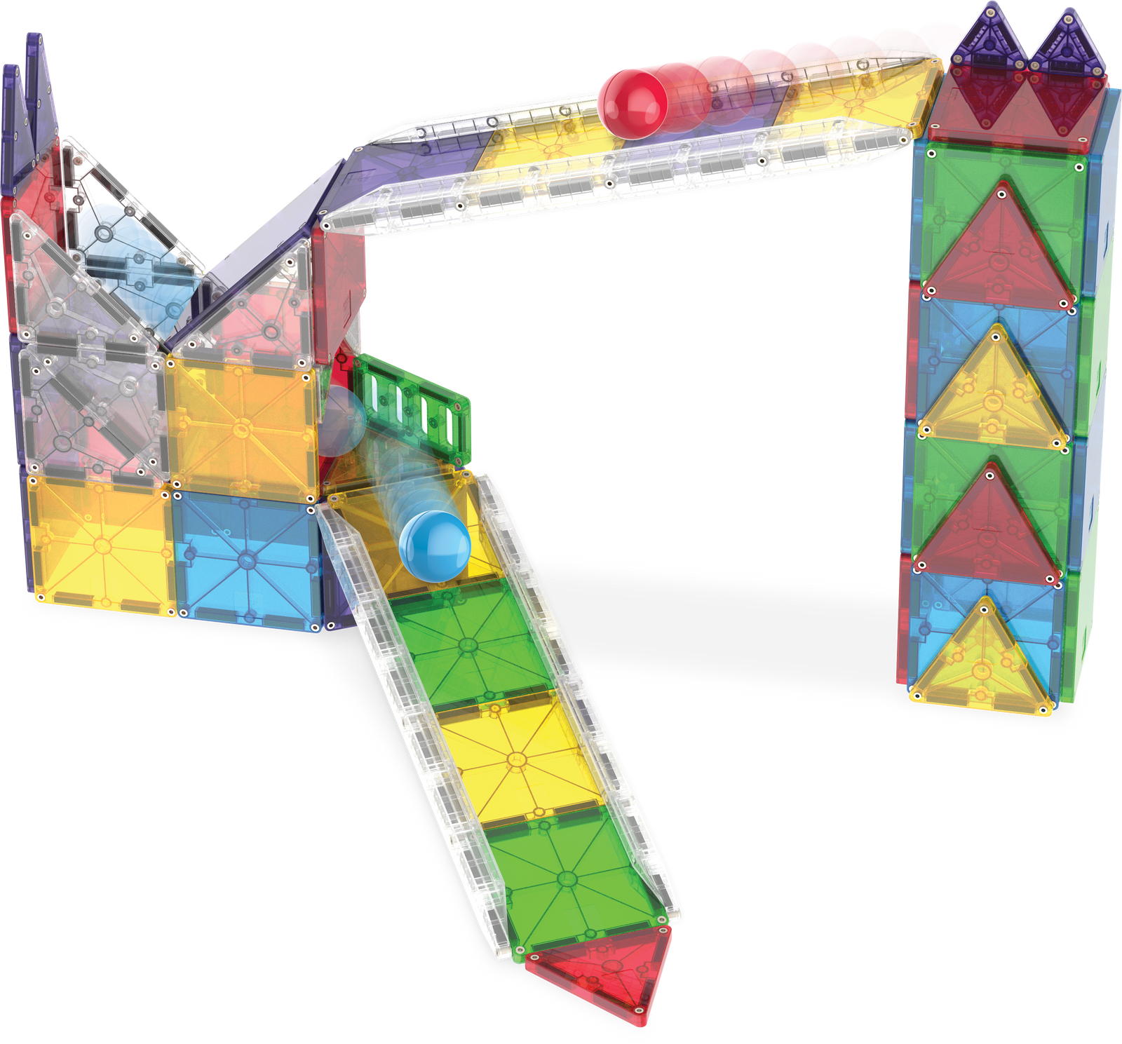- W skład zestawu wchodzą: 90 magnetycznych elementów (w tym 6 szyn) oraz 2 piłeczki.
