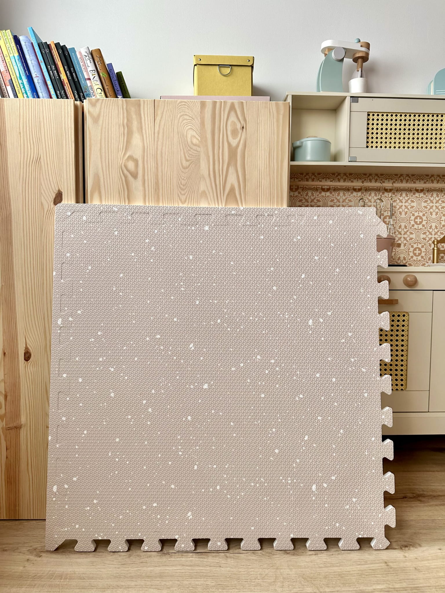 Mata piankowa puzzle SPOTS CAPPUCCINO łączy te cechy w wyjątkowym, oliwkowym odcieniu inspirowanym naturą. To doskonały wybór do pokoju dziecięcego, ale także elegancki dodatek do salonu – wygląda jak nowoczesny, przytulny dywan, który wpisuje się w estetykę wnętrzarskiego minimalizmu. Subtelny oliwkowy kolor i delikatne plamki przypominające atramentowe kropeczki sprawiają, że mata SPOTS OLIVE dodaje wnętrzu spokoju i charakteru. Idealnie komponuje się z naturalnymi i ziemistymi tonami, podkreślając nowoczesną, a zarazem przytulną aranżację przestrzeni.