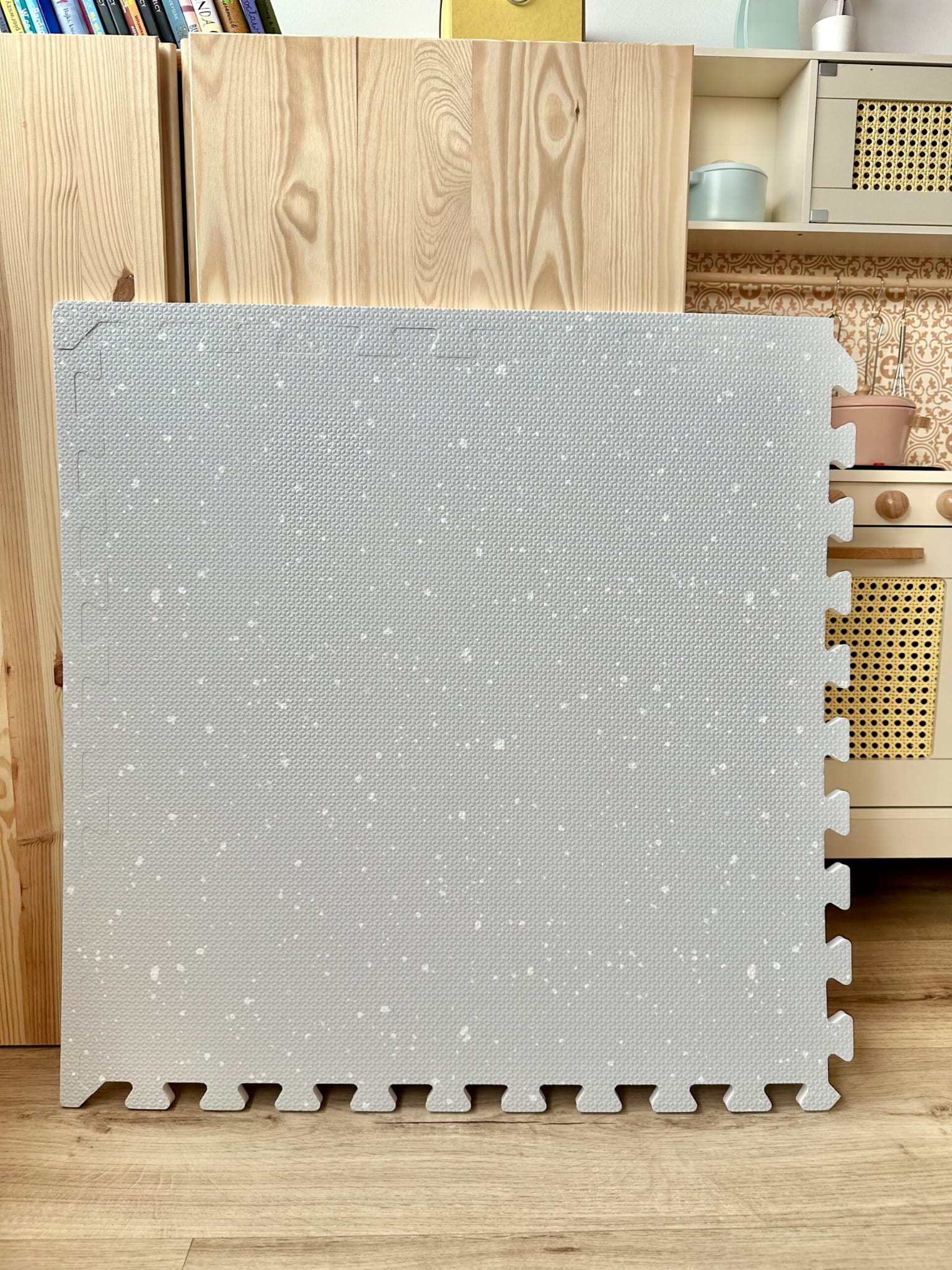 Mata składa się z praktycznych puzzli, które możesz dowolnie łączyć, aby stworzyć idealny rozmiar dla swojego wnętrza. Zestaw o wymiarach 120 x 180 cm zawiera 6 płytek – możesz dokupić dodatkowe, by powiększyć przestrzeń zabawy.