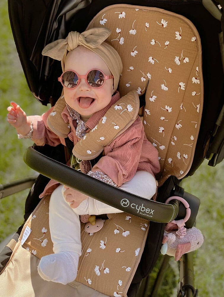 Uniwersalna wkładka muślinowa do wózka Stokrotki od Beloff to must have w codziennych spacerach i rodzinnych wycieczkach