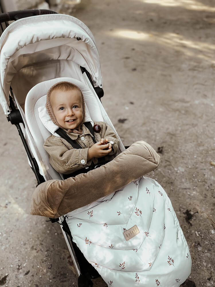 Półśpiworek Gałązki Boho Beloff – wodoodporne, ciepłe i funkcjonalne okrycie na nóżki do wózka.