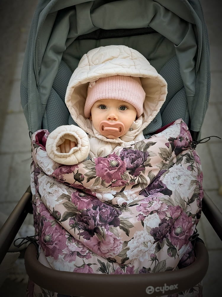 Półśpiworek Kwiecista Polana Beloff – wodoodporne, ciepłe i funkcjonalne okrycie na nóżki do wózka.
