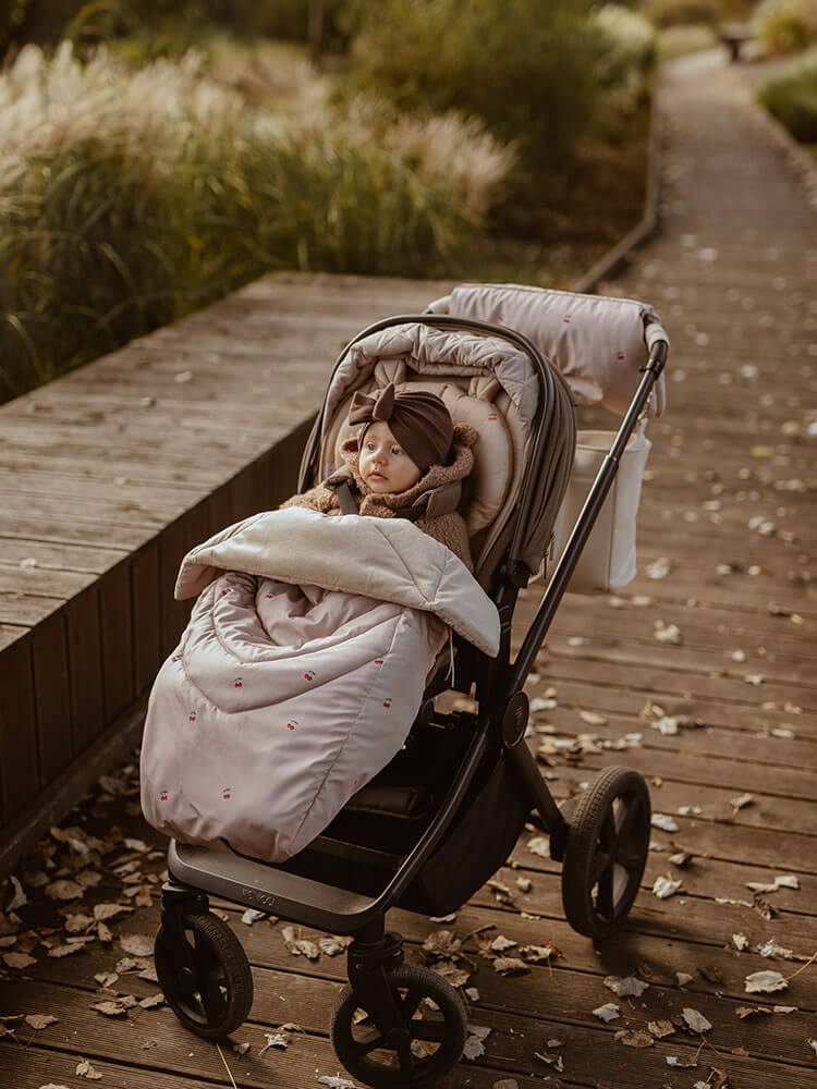 Półśpiworek Wisienki Beloff – wodoodporne, ciepłe i funkcjonalne okrycie na nóżki do wózka.