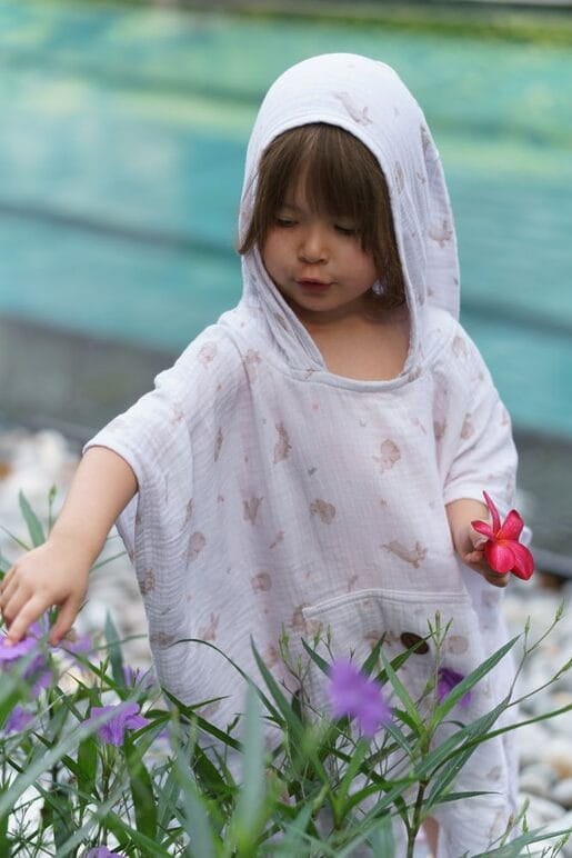Przygotuj dziecko na wakacyjne przygody z ponczem plażowym Makaszka, wykonanym z lekkiego i przewiewnego muślinu bawełnianego. To idealne rozwiązanie po kąpieli – zarówno w domu, jak i na plaży czy przy basenie. Delikatna tkanina doskonale chłonie wodę, jednocześnie chroniąc skórę przed promieniami słońca.