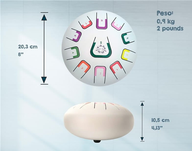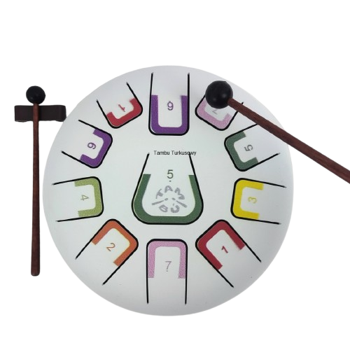 Tambu to stalowy bębenek językowy (tongue drum) - 8 calowy, 11 tonowy. Odkryj Tambu - fascynujący instrument muzyczny dla Twojego Dziecka i Ciebie! Ten bębenek jest dla każdego. Tambu to rodzaj melodycznego bębenka językowego, który wprowadzi Cię w pasjonujący świat zabawy dźwiękami. Tambu jest kompaktowym, okrągłym, 8 calowym (20 cm), stalowym bębenkiem, który skrywa aż 11 tonów. Cały wszechświat melodii masz na wyciągnięcie ręki. Daj się zaskoczyć jego aksamitnemu i relaksującemu brzmieniu i wyzwól u dziecka lub u siebie talent artystyczny!
