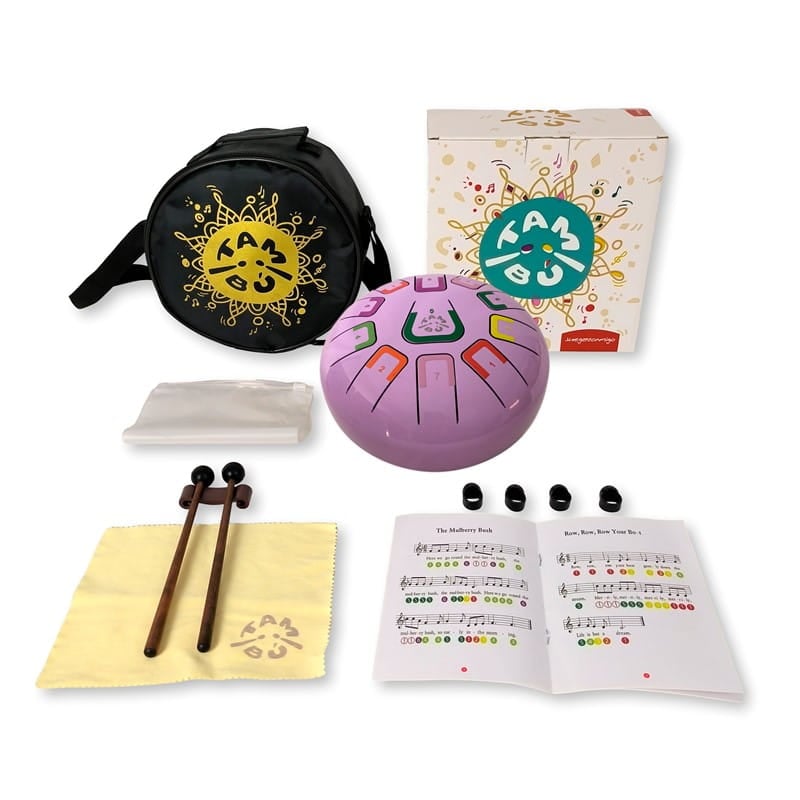 Tambu to stalowy bębenek językowy (tongue drum) - 8 calowy, 11 tonowy. Odkryj Tambu - fascynujący instrument muzyczny dla Twojego Dziecka i Ciebie! Ten bębenek jest dla każdego. Tambu to rodzaj melodycznego bębenka językowego, który wprowadzi Cię w pasjonujący świat zabawy dźwiękami. Tambu jest kompaktowym, okrągłym, 8 calowym (20 cm), stalowym bębenkiem, który skrywa aż 11 tonów. Cały wszechświat melodii masz na wyciągnięcie ręki. Daj się zaskoczyć jego aksamitnemu i relaksującemu brzmieniu i wyzwól u dziecka lub u siebie talent artystyczny!
