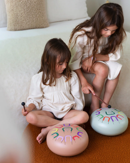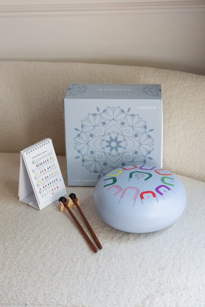 Tambu+ to duży stalowy bębenek językowy (tongue drum) - 10 calowy, 11 tonowy. Odkryj Tambu+ to rozszerzona wersja klasycznego Tambu. Dzięki średnicy 25 cm i większej konstrukcji oferuje szerszy zakres melodyczny – idealny dla starszych dzieci i dorosłych, którzy chcą odkrywać bogatsze kompozycje i bardziej złożone brzmienia! Tambu jest kompaktowym, okrągłym, 10 calowym (25 cm), stalowym bębenkiem, który skrywa aż 11 tonów. Cały wszechświat melodii masz na wyciągnięcie ręki. Daj się zaskoczyć jego głębokiemu, aksamitnemu i relaksującemu brzmieniu i wyzwól u dziecka lub u siebie talent artystyczny!