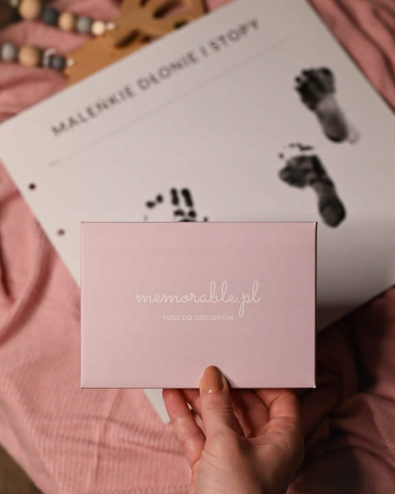 Niebrudzący tusz do odcisków małych rączek i stópek to fantastyczny gadżet pozwalający zachować na zawsze odcisk dłoni i/lub stopy dziecka nie brudząc jego skóry. W dedykowanym pudełku znajduje się ramka z tuszem oraz dwie kartki do odbicia. Możesz pobrać kartę dodatkową do samodzielnego wydruku „Maleńkie dłonie i stopy”, która stanie się perfekcyjną bazą na zatrzymanie tak niepowtarzalnych chwil.