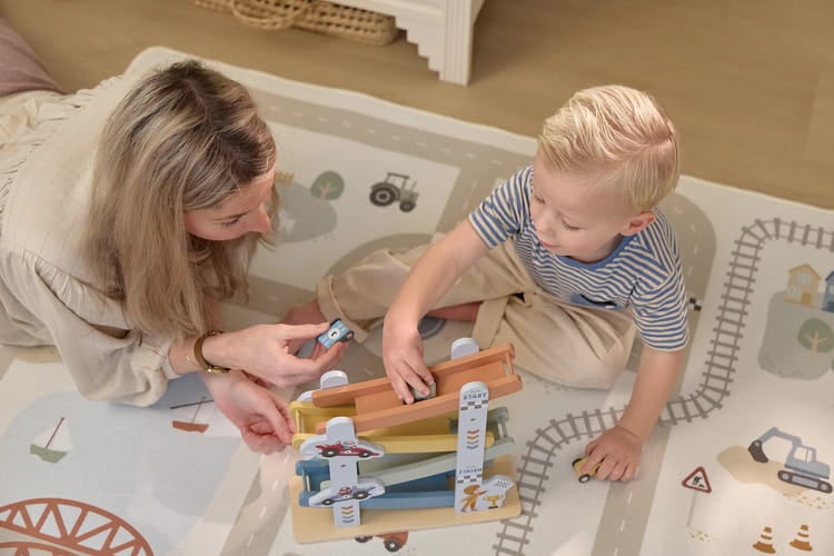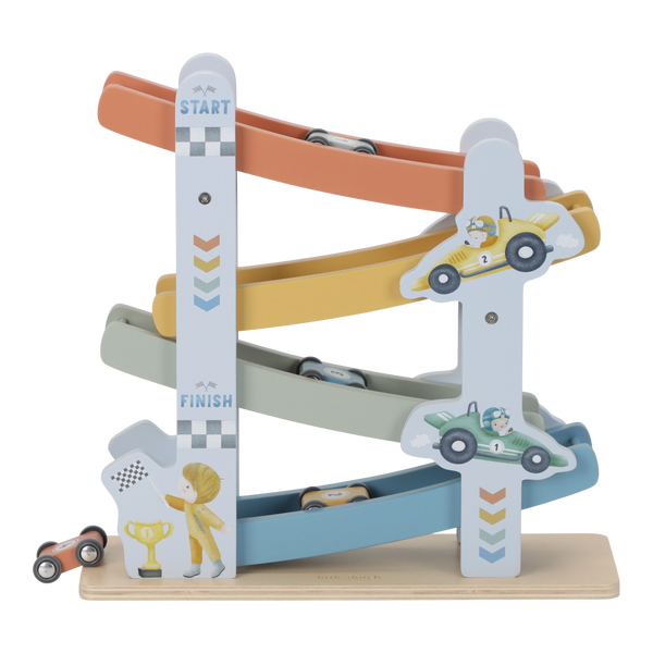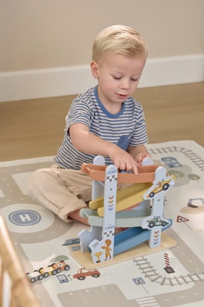 Zjeżdżalnia wyścigowa FSC Little Dutch świetnie łączy się z innymi pojazdami Little Dutch.